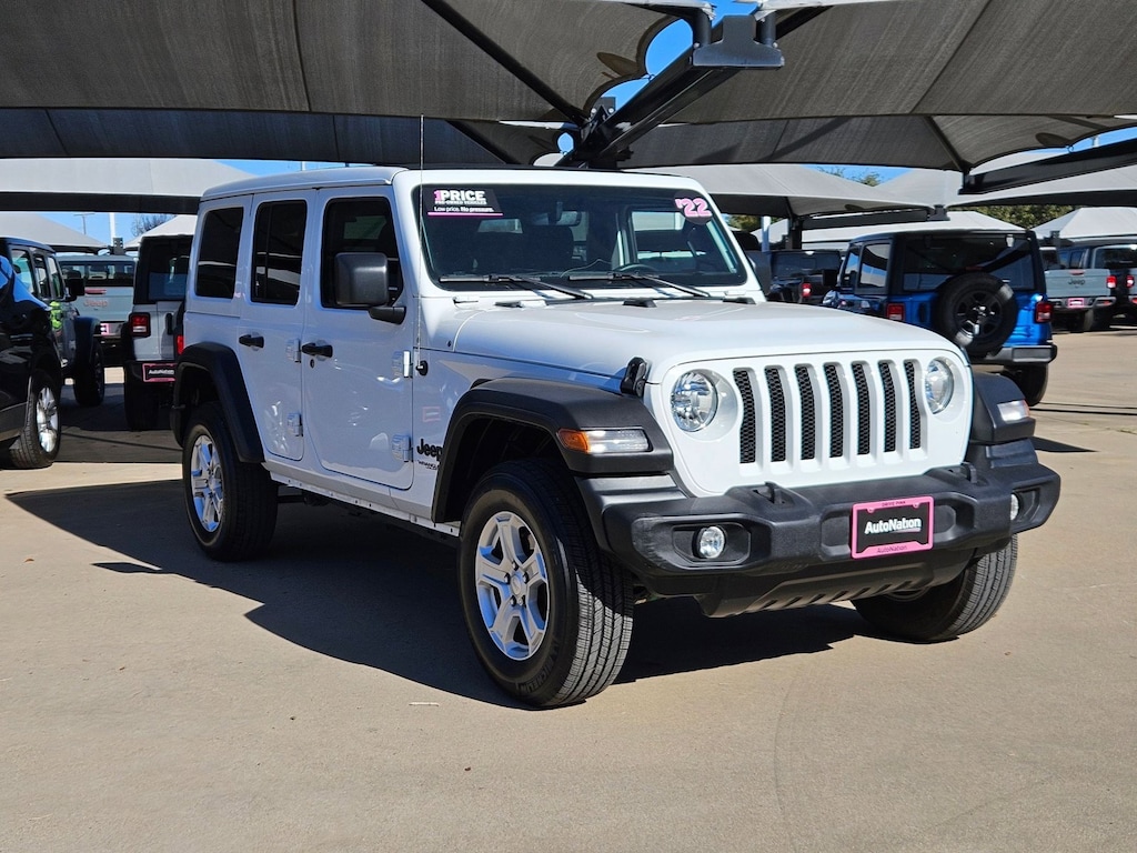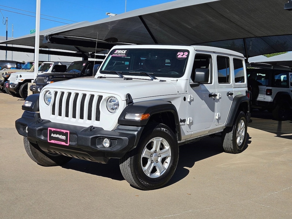 This 2022 Jeep Wrangler Unlimited Sport S is proudly offered by AutoNation Chrysler Dodge Jeep Ram North Fort Worth This Jeep includes: ENGINE: 3.0L V6 TURBO DIESEL W/ESS G3 Diesel Fuel V6 Cylinder Engine Turbocharged *Note - For third party subscriptions or services, please contact the dealer for more information.* Perfect for the on-the-go family, this Jeep Wrangler Unlimited Sport S is an SUV everyone will love. With exceptional mileage, options and power, you'll insist on driving it on all your outings. At home in the country and in the city, this 2022 4WD Jeep Wrangler Unlimited Sport S has been wonderfully refined to handle any occasion. Smooth steering, superior acceleration and a supple ride are just a few of its qualities. Exceptional in every sense of the word, this incredibly low mileage vehicle is one of a kind.