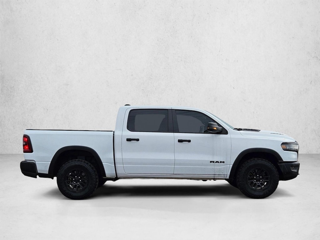 2025 Ram 1500 Rebel White Hot Adventure-Ready Pickup Stand out with this 2025 Ram 1500 Rebel in striking Bright White a rugged yet refined pickup thats engineered for both off-road excitement and everyday dependability. With bold styling, powerful performance, and cutting-edge technology, this Rebel delivers the perfect blend of capability and comfort drivers are searching for. Trail-Ready Performance & Capability Powerful 3.0 L Hurricane Twin-Turbo I6 engine with an impressive 420 hp and 469 lb-ft of torque , ready to harness highway performance and trail-side confidence. Off-road-focused design with lifted suspension, 1-inch raised ride height, and Bilstein performance shocks , made to handle rugged terrain with ease. Available 4-Wheel Drive with advanced traction systems ensures capability on dirt roads, gravel paths, and inclement weather. Bold Exterior That Owns the Road Aggressive styling with all-terrain 33-inch Goodyear tires, skid plates, and rugged black accents that make a statement wherever you go. Distinctive LED headlamps, fog lamps, and Rebel-specific design cues underscore its ready-for-anything personality. Eye-catching Bright White finish that stands out from the crowd and pairs perfectly with Black wheel flares and accents. Tech & Comfort That Keeps You Connected Premium Uconnect infotainment with available 12.0-inch touchscreen and Apple CarPlay/Android Auto compatibility keeps entertainment and navigation at your fingertips. Comfortable and capable interior with heated seats, dual-zone climate control, and optional Alpine premium audio perfect for long drives or off-grid adventures. Smart driver features like adaptive cruise control, blind-spot monitoring, and more help keep you confident on every trip. Rugged Practicality Meets Everyday Ease Large cargo bed, powerful towing capability, and trail-ready hardware make this Rebel a true work-and-play vehicle. Built-in tow hooks and skid protection ensure youre prepared for both trail challenges and daily duties. Remote start, keyless entry, and wireless phone charging add convenience buyers actively search for.